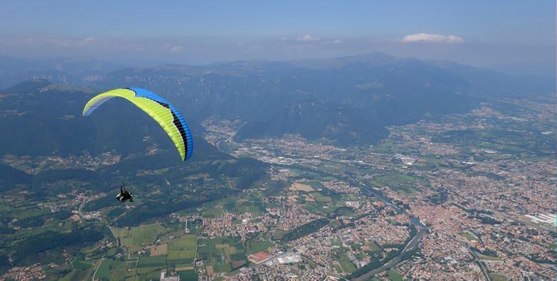 BASSANO DEL GRAPPA, Italia se encuentra en el “Piamonte” o pie de los Alpes con orientación sur, frente al despegue se encuentra la llanura hacia el Adriático donde se encuentra Venecia a solo 50 km. Bassano es famoso por ser un sitio amigable y fácil de volar, excelente para pilotos de nivel básico intermedio. La comida Italiana por supuesto es uno de los atractivos y la región esta repleta de pueblos medievales que vale la pena visitar en caso de mal clima. Otros despegues alternativos son Meduno y Gemona.